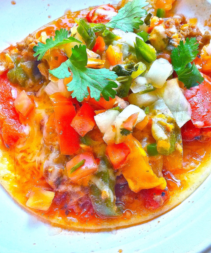 - Place ⅙th of the turkey mixture on each corn tortilla. Top each taco with shredded cheese and pico de gallo (chopped tomatoes, onions, jalapenos, and cilantro) or your favorite toppings.